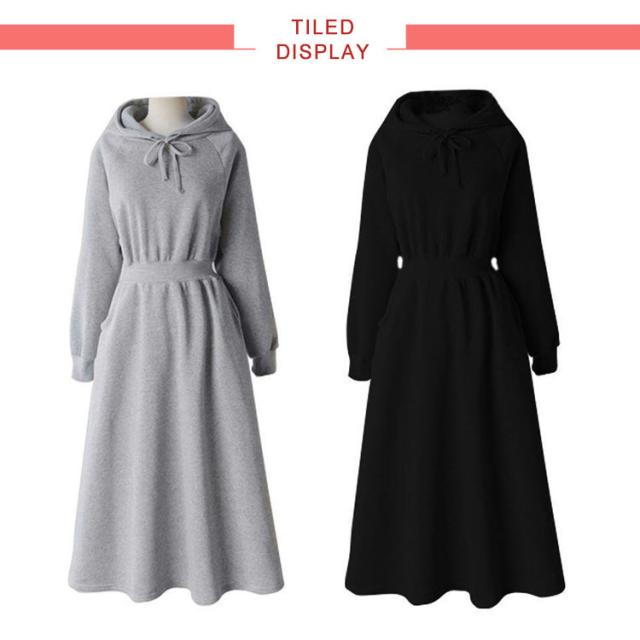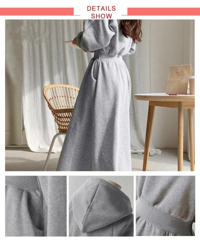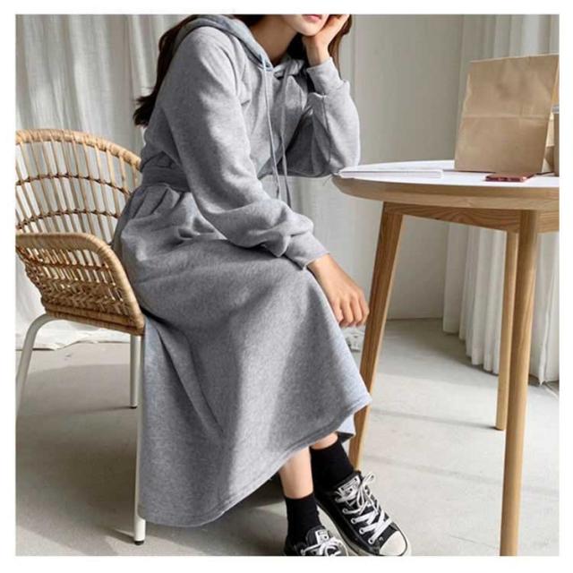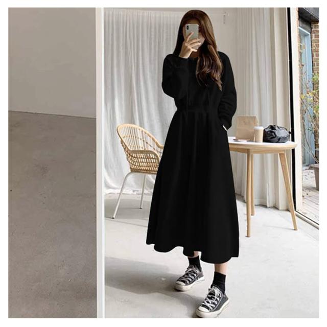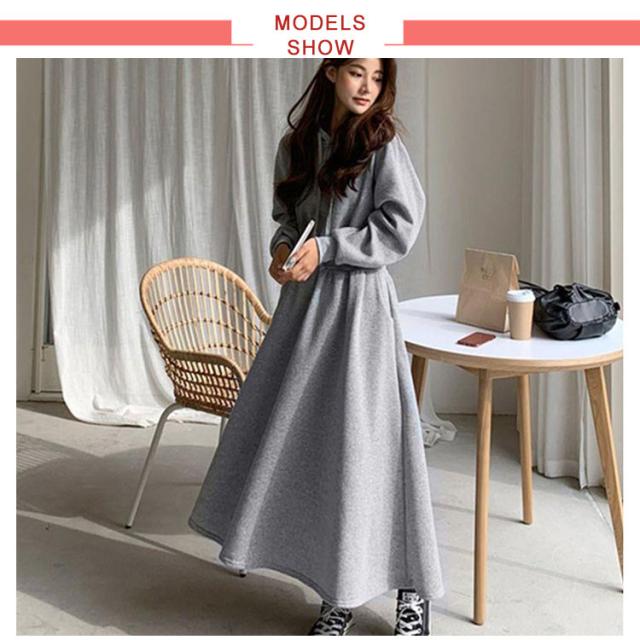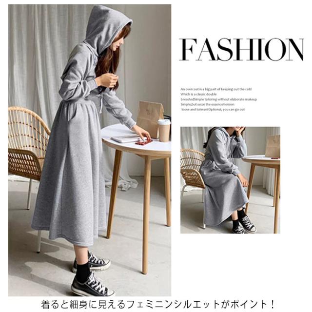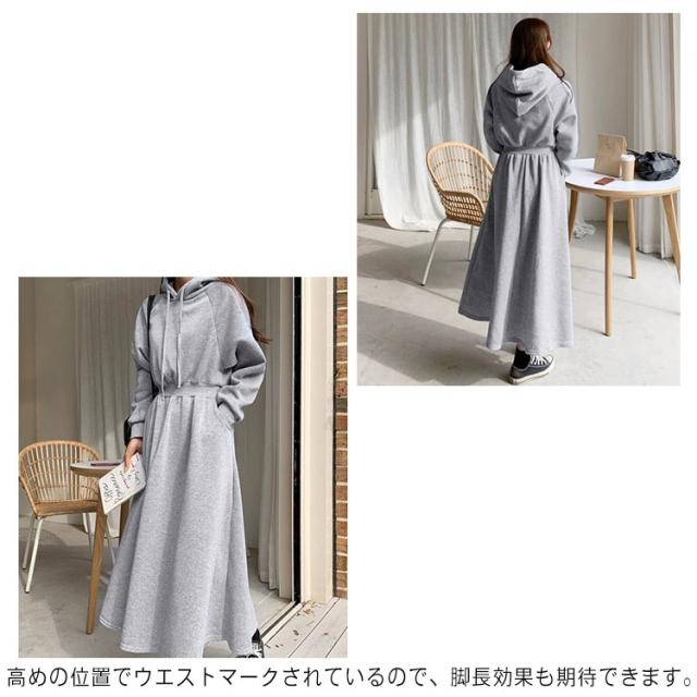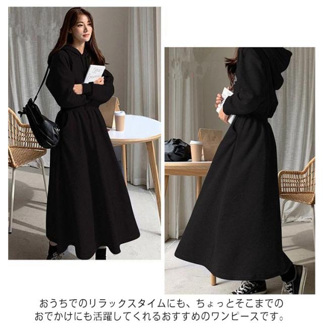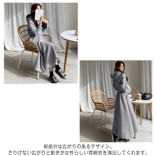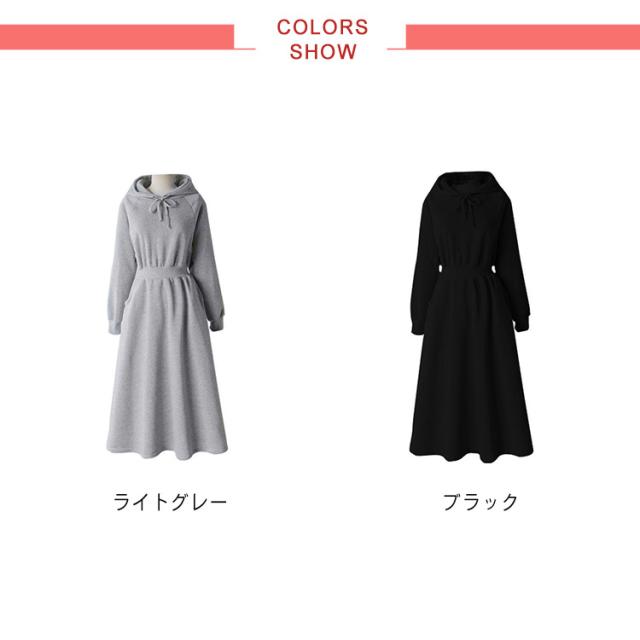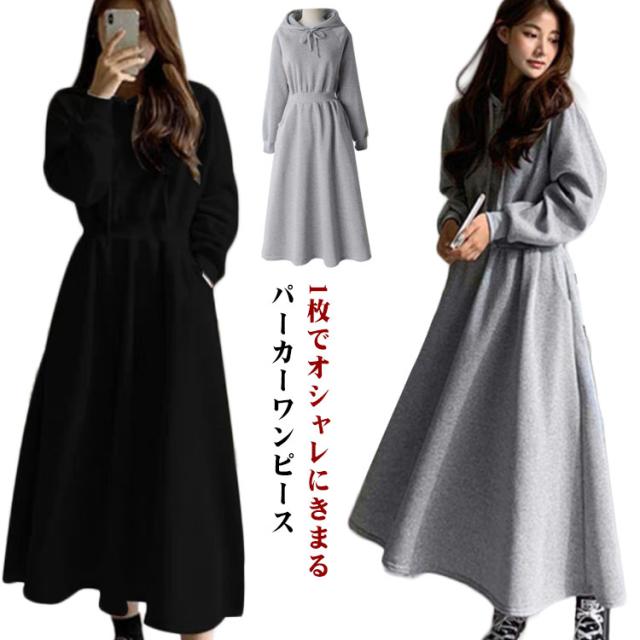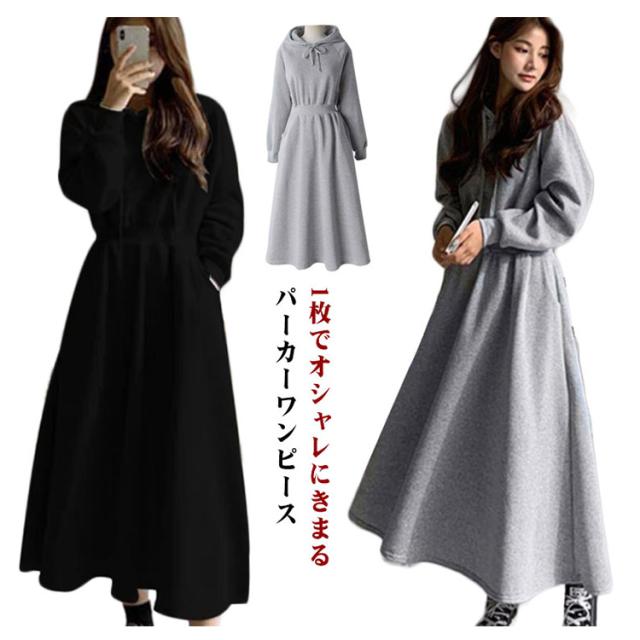 パーカーワンピース レディース Aライン 長袖 秋 春 薄手 フレア ワンピース おしゃれ カジュアル フード付き 着?せ マキシ丈 ロングワンピース 無地 シンプル 可愛い 20代 30代 40代 体型カバー ロング丈 ウエストタック ウエストゴム ゴム 大きいサイズ 送料無料