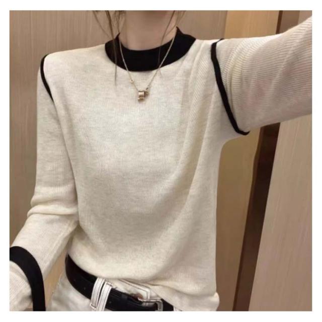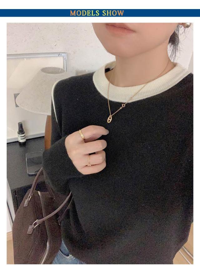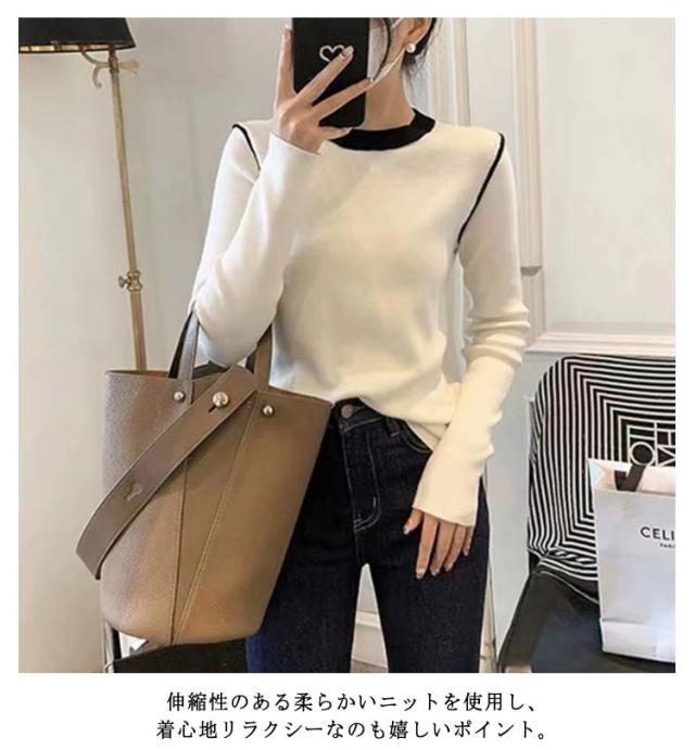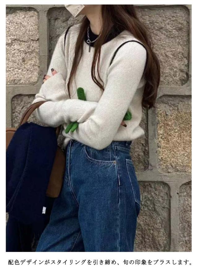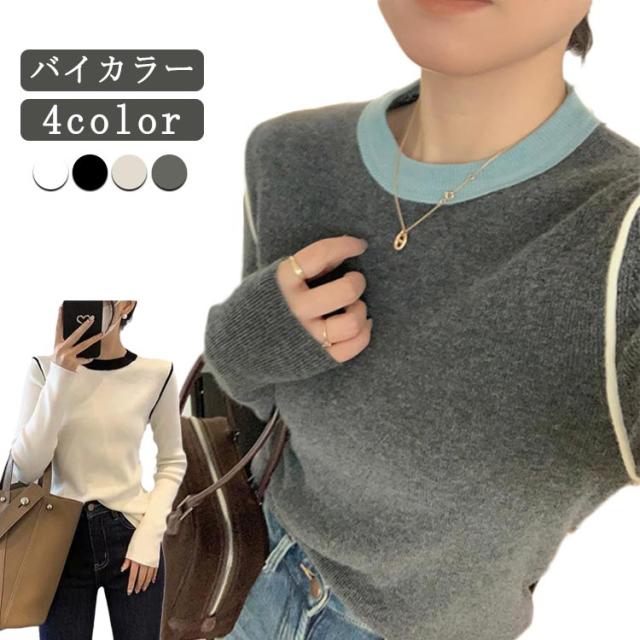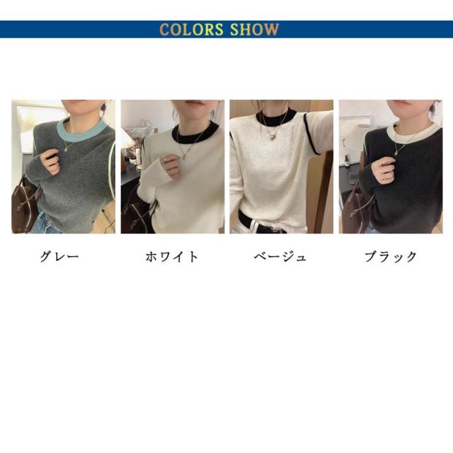レディース トップス バイカラー カジュアル セーター 冬 秋 ニット クルーネック 通勤 オフィス 暖かい 柔らかい バイカラー 防寒 保温 丸首 チクチクしない