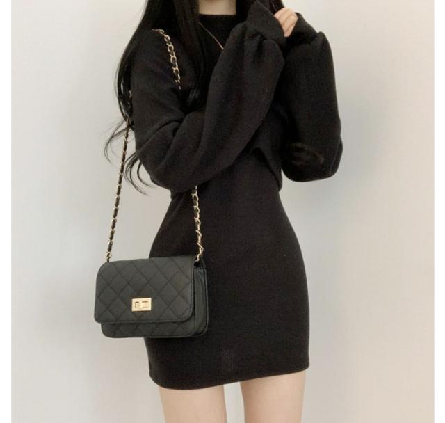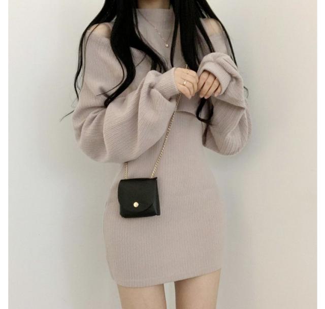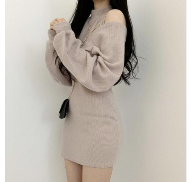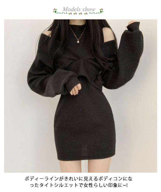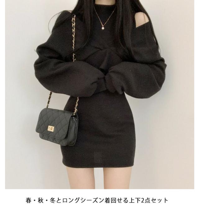 レディース 長袖 ミニワンピース セーター 2点セット 秋冬 着痩せ ニットワンピース ショートワンピース 肩出し 無地 トップス レディース セーター セットアップ ワンピース ドレス カジュアル セクシー