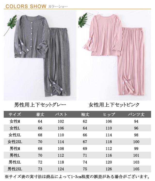 | 色 | 女性用上下セットピンク 男性用上下セットグレー |