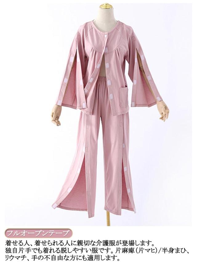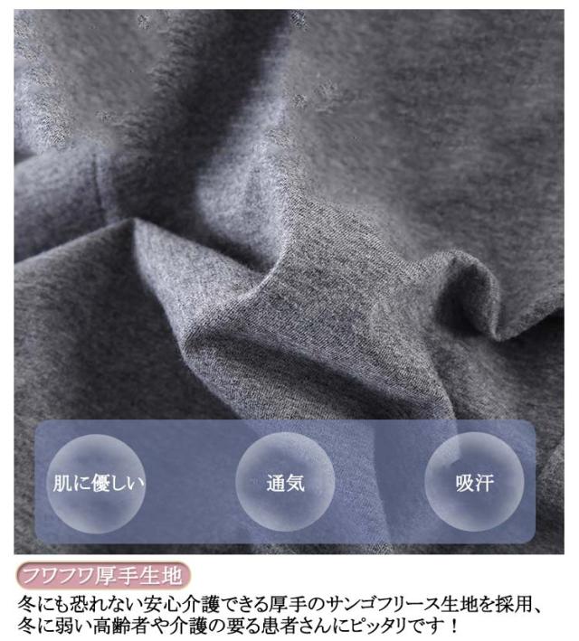 | 全開&綿 【デザイン】落ち着いた色目に見た目は普通のパジャマに見えるが、実は機能性と実用性満杯の介護専用パジャマです。 【フワフワ厚手生地】冬にも恐れない安心介護できる厚手のサンゴフリース生地を採用、冬に弱い高齢者や介護の要る患者さんにピッタリです! 【フルオープンテープ】着せる人、着せられる人に親切な介護服が登場します。独自片手でも着れる脱しやすい服です。片麻痺(片マヒ)/半身まひ、リウマチ、手の不自由な方にも適用します。 【利用便利】ファスナー付きで、片手でも簡単着脱ぎができます。点滴、検温や着替え時の開閉がラクラクです! | |