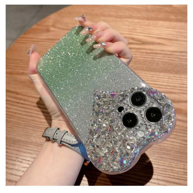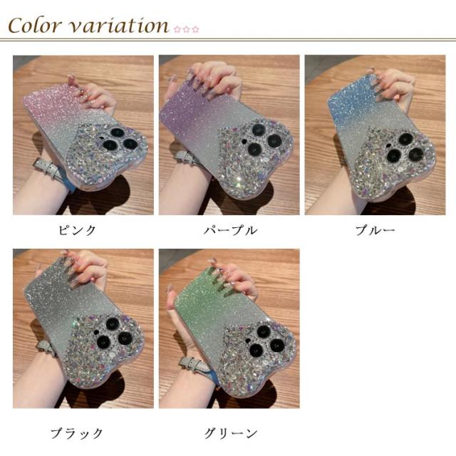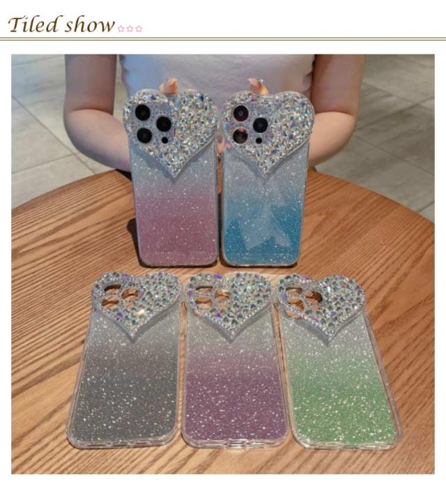 ケース 16Pro ケース 16ProMax グラデーション ラメ ハート かわいい ケース グラデーション iphone16 ケース iPhone15 キラキラ iPhone14 韓国 16Plus ケース ラインストーン ビジュ おしゃれ スマホケース スリム 可愛い iPhoneXSmax