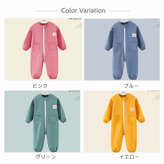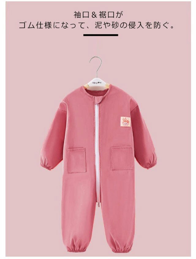 送料無料 プレイウェア お砂場着 子供 オーバーオール キッズ 長袖 ロンパース 女の子 男の子 つなぎ プルオーバー 撥水加工 スモック 子供服 子ども ベビー ジャンプスーツ ダブルファスナー付き 遊び着 汚れ防止 水遊び 小学生 幼稚園 保育園 80 90 100 110 120cm