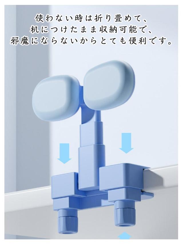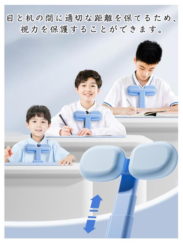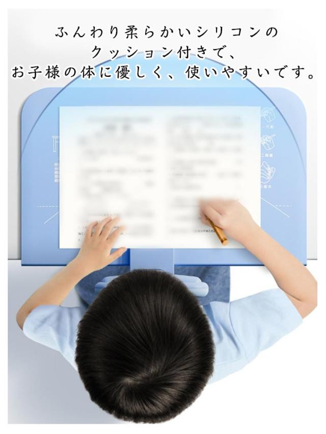 | 正しい姿勢の習慣化♪視力低下予防! 勉強、宿題、読書、お絵かきなど時、自然と前のめりになりがちです。悪い姿勢を正しい姿勢に矯正して、視力低下を予防します。 目と机の間に適切な距離を保てるため、視力を保護することができます。 お子様の座高などに合わせて高さを調節可能、視界を妨げないので勉強に集中できます。 ふんわり柔らかいシリコンのクッション付きで、お子様の体に優しく、使いやすいです。 使わない時は折り畳めて、机につけたまま収納可能で、邪魔にならないからとても便利です。 工具不要!テーブルに挟むだけの簡単取り付け。厚さ約5.5cmまでのテーブルに簡単に取り付けできます。 | |