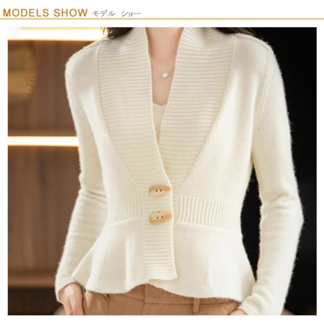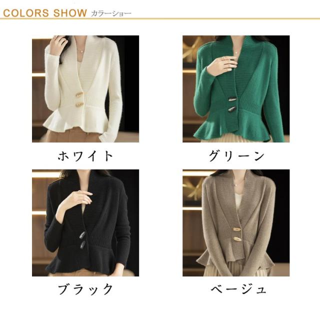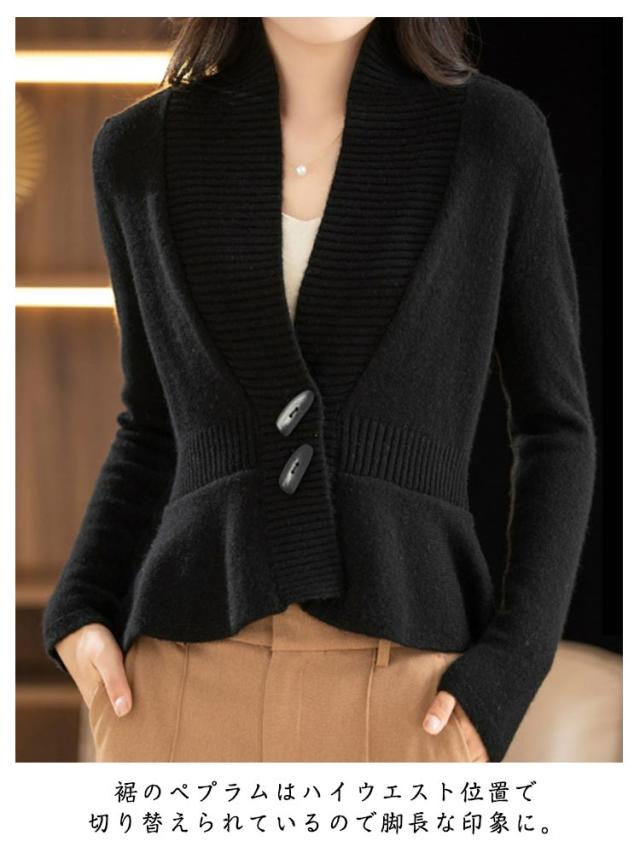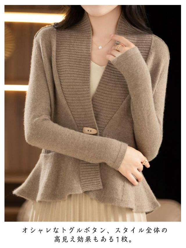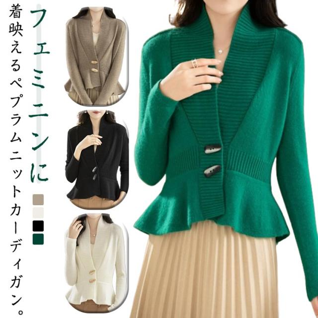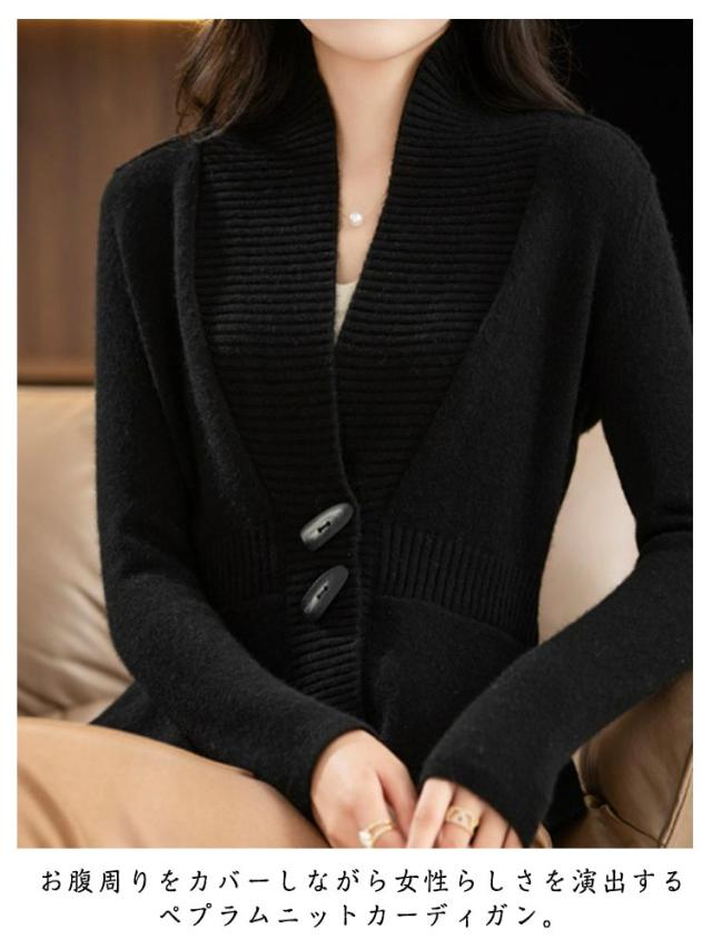 ニット ペプラム お洒落 Vネック ショールカラー トップス ニットカーディガン ペプラムカーディガン 長袖 ペプラム 体型カバー 細見え ペプラムシルエット 羽織り トグルボタン メリハリ
