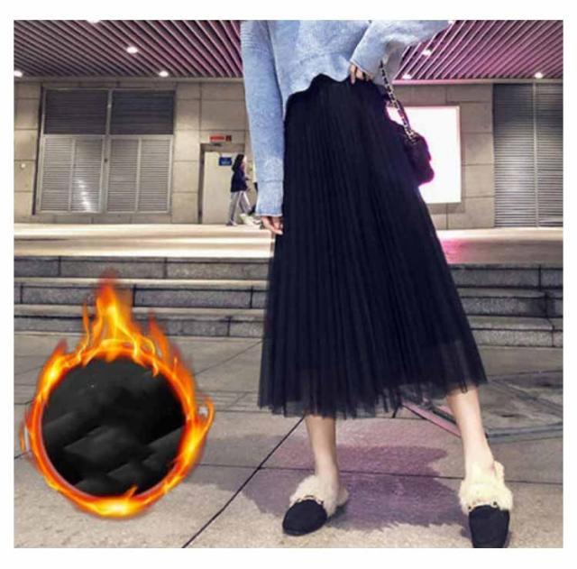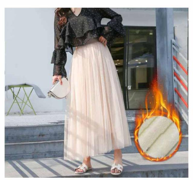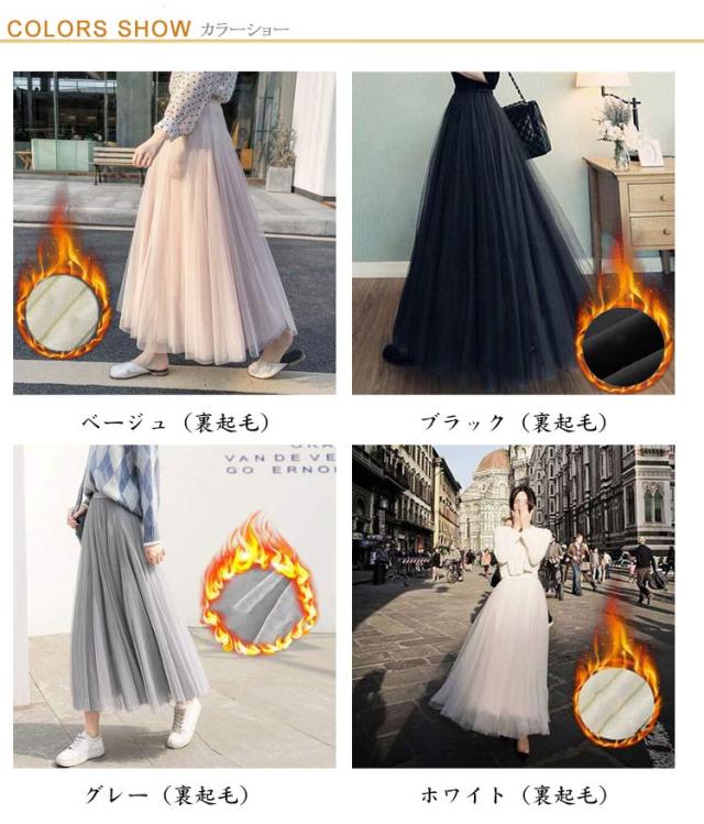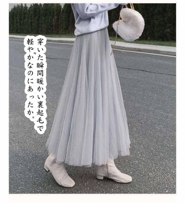 寒い冬もあったか♪ 裏起毛 チュールスカート マキシスカート フリース裏地付き マキシ丈 ロングスカート チュール フレアスカート aライン 厚手 秋冬 演奏会 発表会 暖かい 無地 体型カバー 送料無料