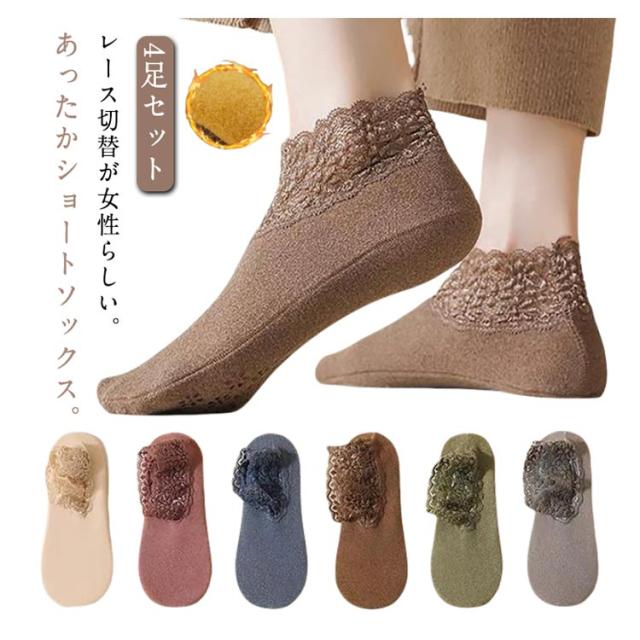 靴下 冷え対策 あったか靴下 レース レディース 締め付けない あったか 4足セット 暖かい 滑り止め付き 裏起毛靴下 4足セット フットカバー 起毛 裏起毛 もこもこ 微起毛 保温 防寒 アンクル ソックス 冷え 大人 秋冬 春 秋 冬 韓国
