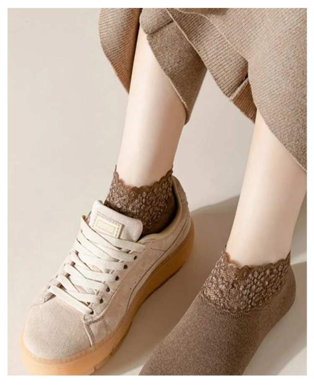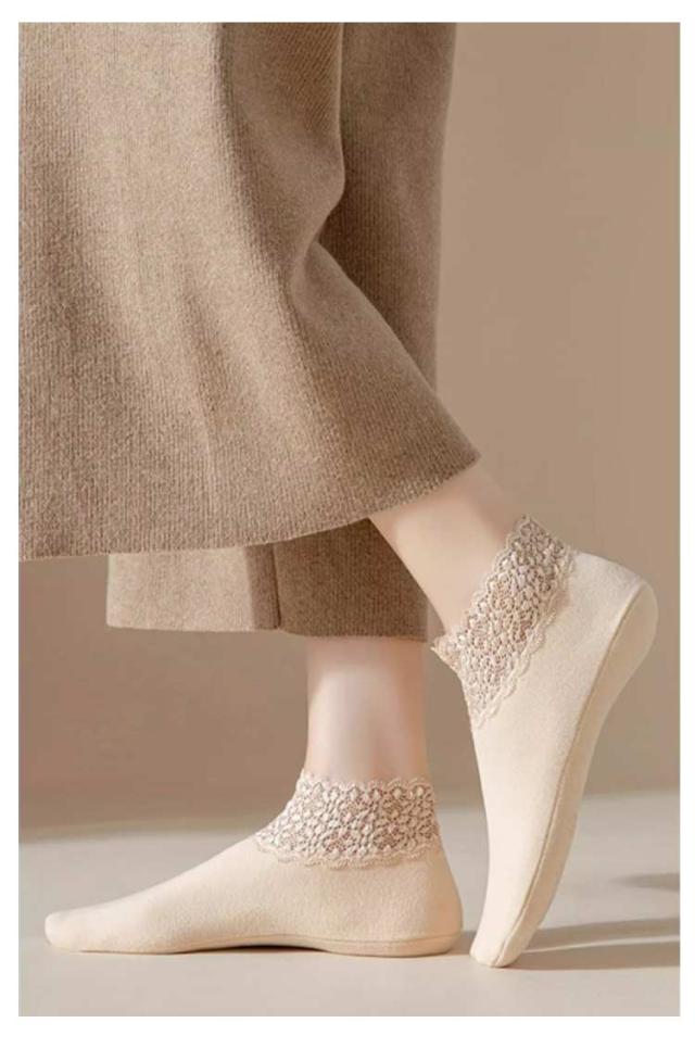 | レース切替が女性らしい。あったかショートソックス。4足セット くるぶしが隠れる丈で、ローファーやスニーカーなどレースのチラ見せがコーデのアクセントに◎ 花柄の滑り止め付きでルームソックスとしても活躍間違いなし♪ | |