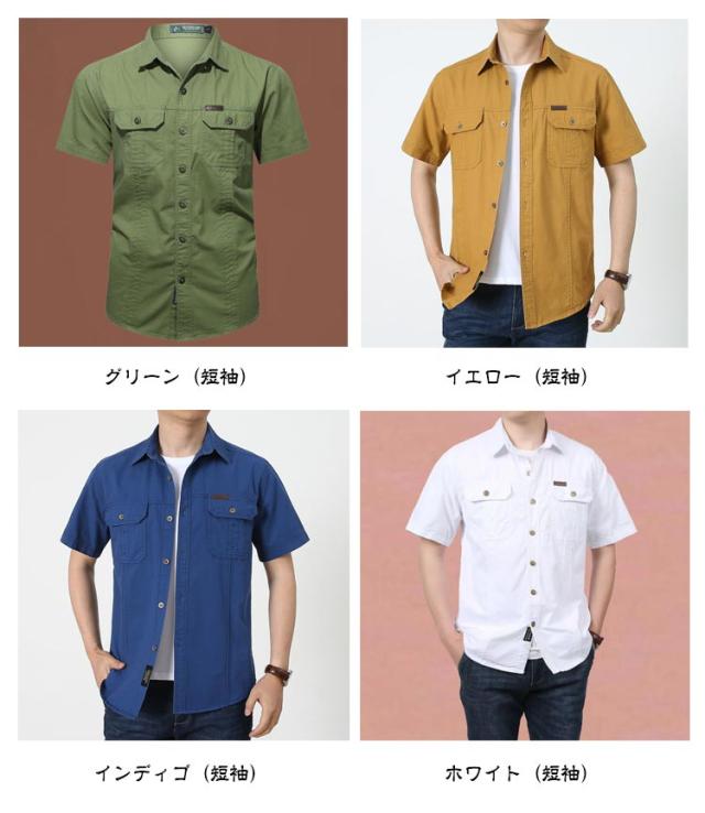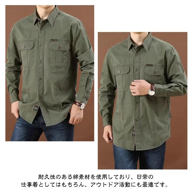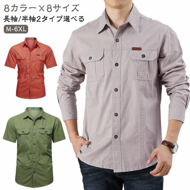 | 8カラー×8サイズ M-6XL 長袖/半袖2タイプ選べる ミリタリーシャツ 綿100% ★耐久性のある綿素材を使用しており、日常の仕事着としてはもちろん、アウトドア活動にも最適です。 ★胸ポケットが付いているため、小物を収納するのに便利で、旅行や釣り、登山などのアクティビティにも対応します。 ★全8色の豊富なカラーバリエーションがあり、お好みやシーンに合わせて選べるのもポイント。 ★シンプルな無地デザインは、どんなボトムスとも相性が良く、お兄系ファッションにもマッチするカッコイイ一枚です。 | |
