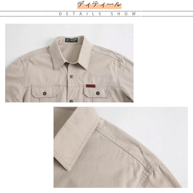 綿100% ミリタリーシャツ メンズ 長袖 半袖 ワークシャツ 無地シャツ カジュアルシャツ トップス 春 夏 秋 冬 仕事着 アウトドア コットンシャツ 胸ポケット 長袖シャツ 旅行 釣り 登山 通勤 春 お兄系 ワーク メンズシャツ カッコイイ