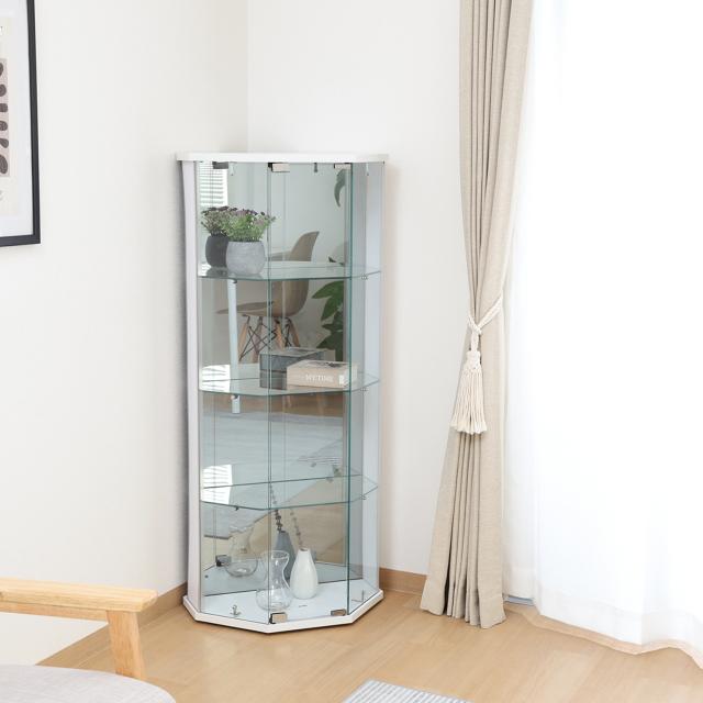 不二貿易 隠しキャスター付ガラスコレクションケース BAAL コーナー(ホワイト) 63935返品種別B