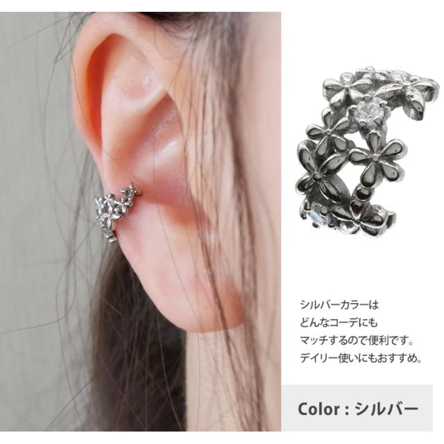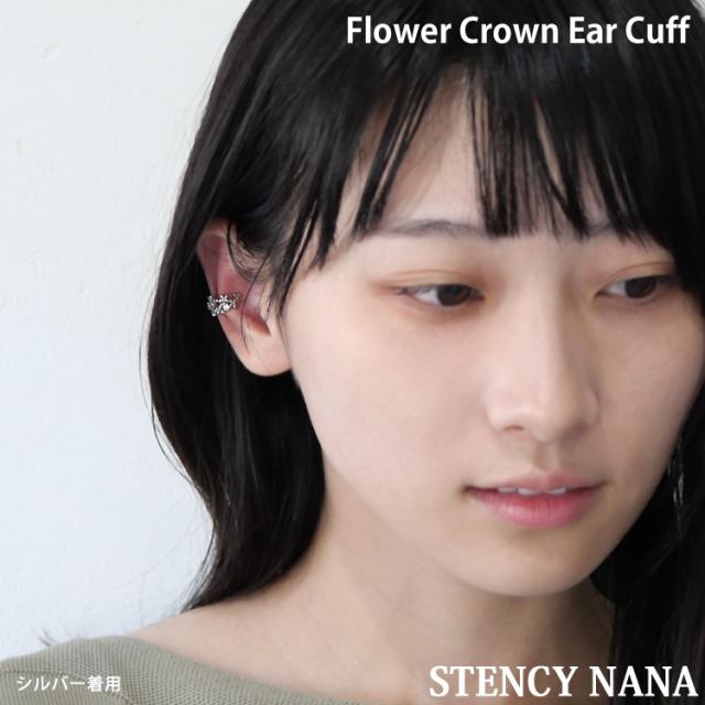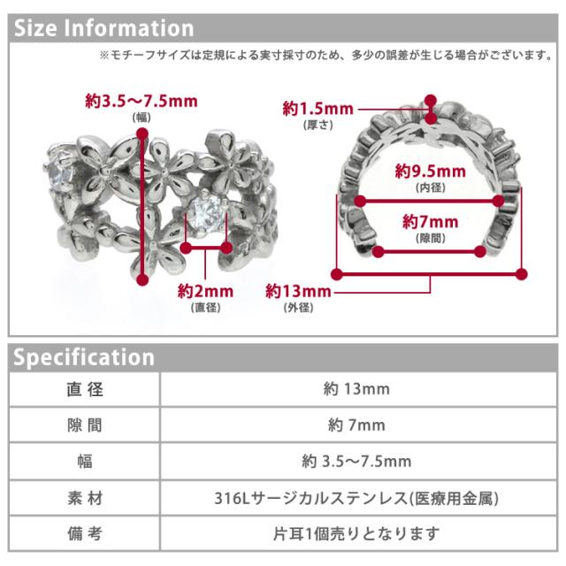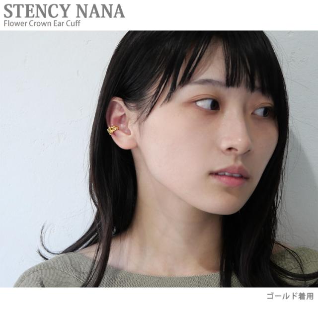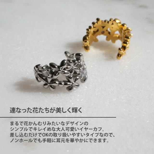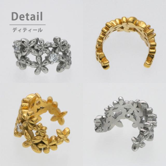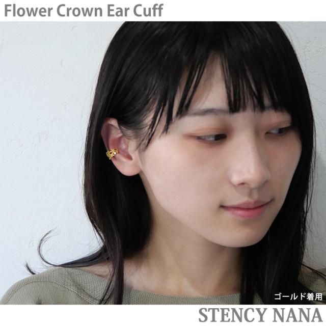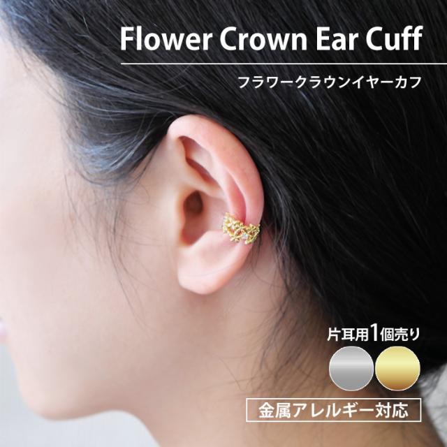 金属アレルギー対応 ステンレスイヤーカフ フラワークラウンイヤーカフ 片耳用 イヤーフック 316L