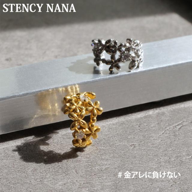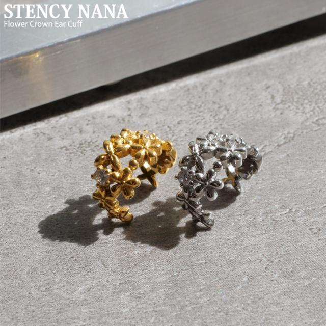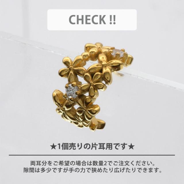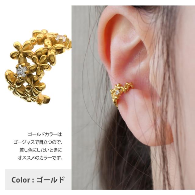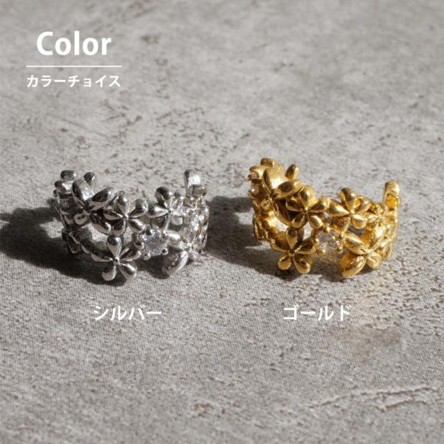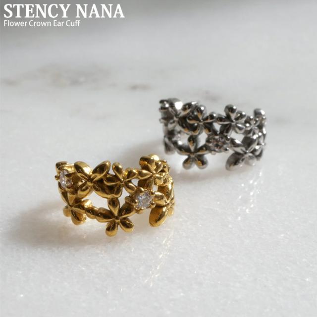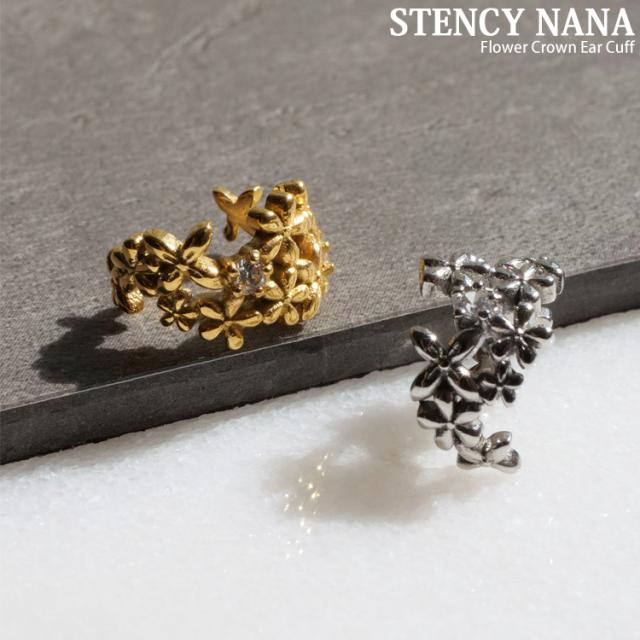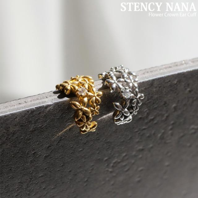 金属アレルギー対応 ステンレスイヤーカフ フラワークラウンイヤーカフ 片耳用 イヤーフック 316L