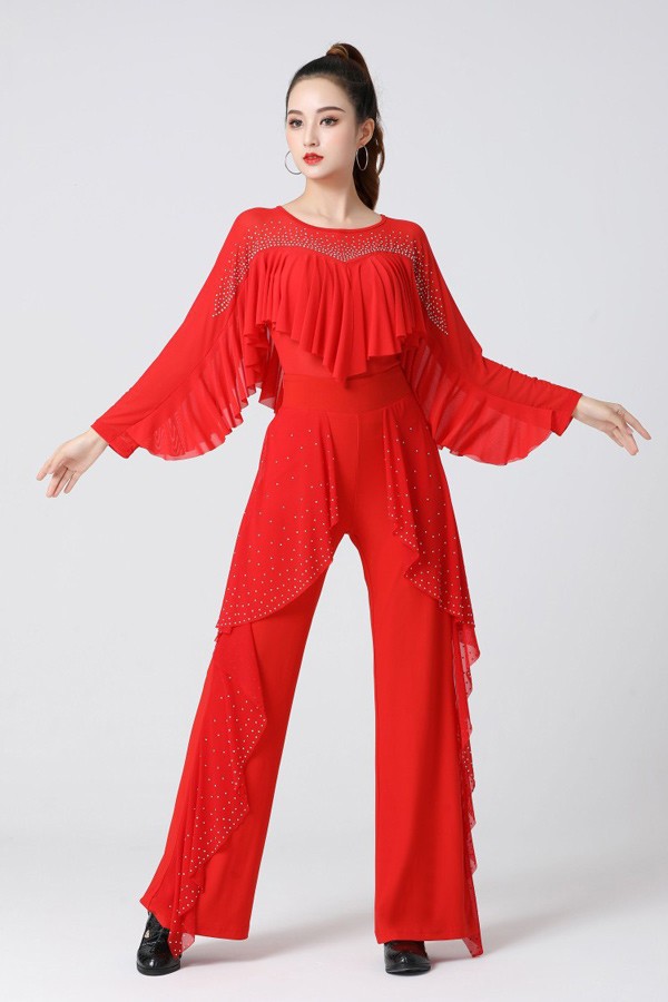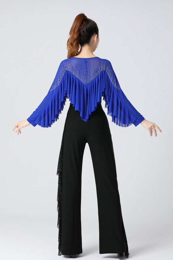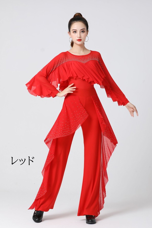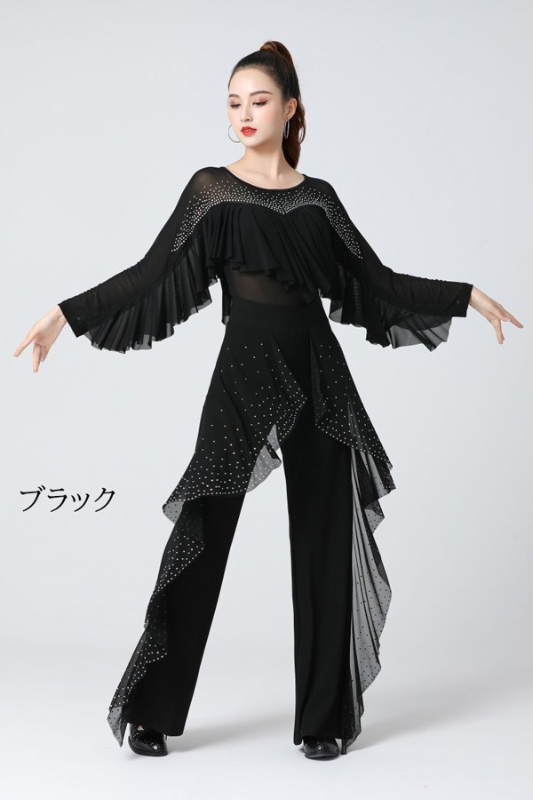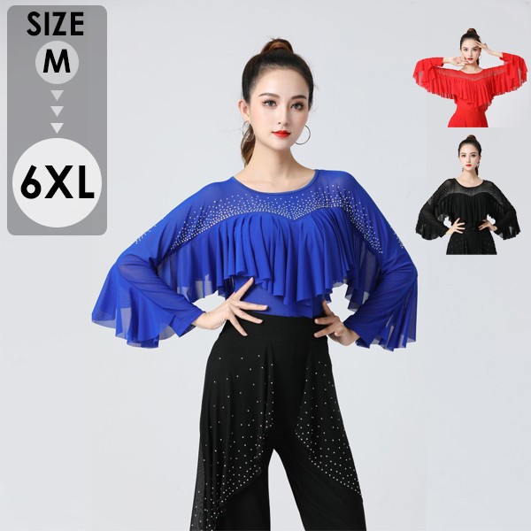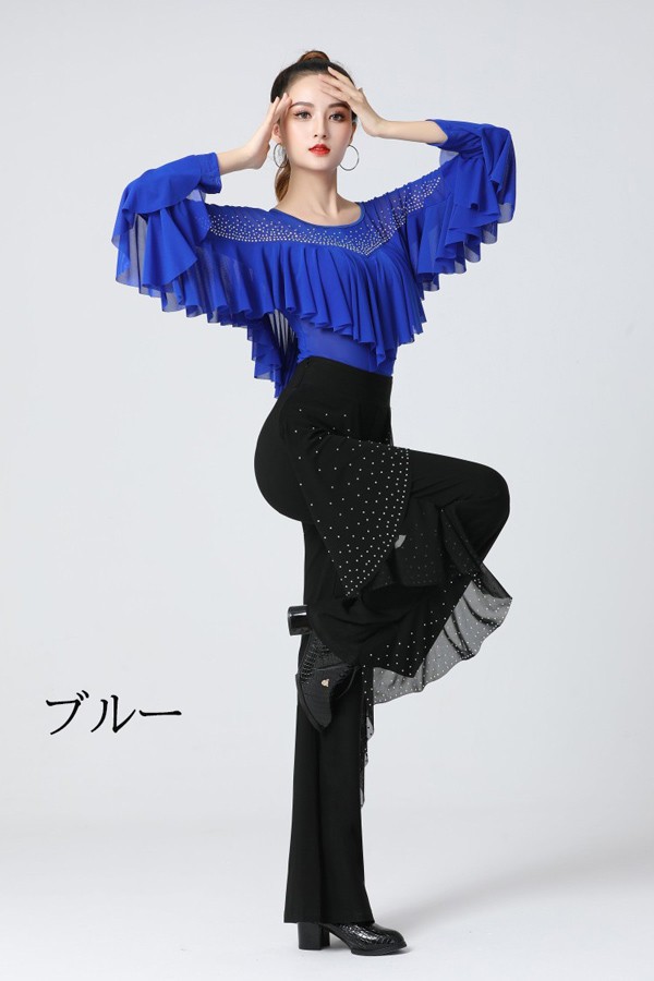 社交ダンス トップス レディース 上着 競技着 モダンラテンダンス用上着 レース フリル 長袖 女性用 ダンス衣装 ダンス 社交 練習着 ワルツ チャチャチャ ラテン ステージ 衣装 演出着 ダンストップス