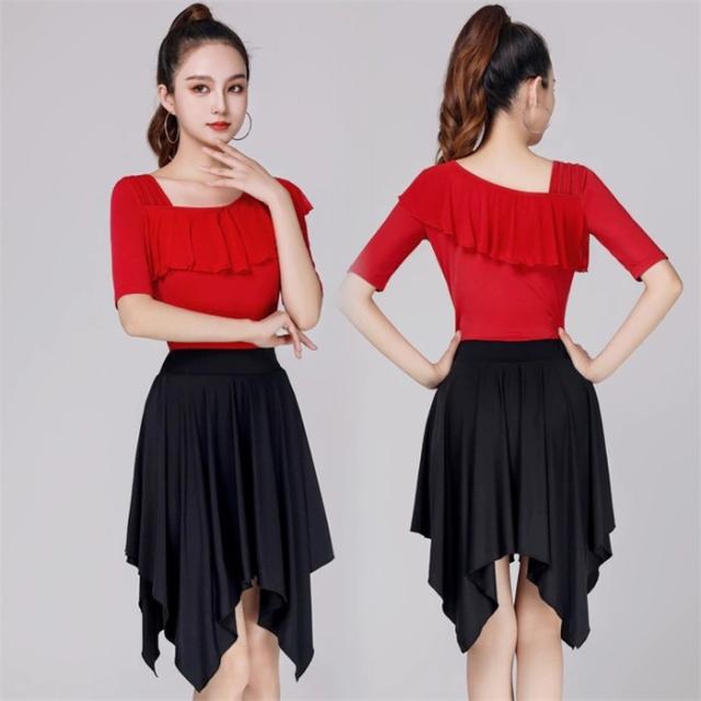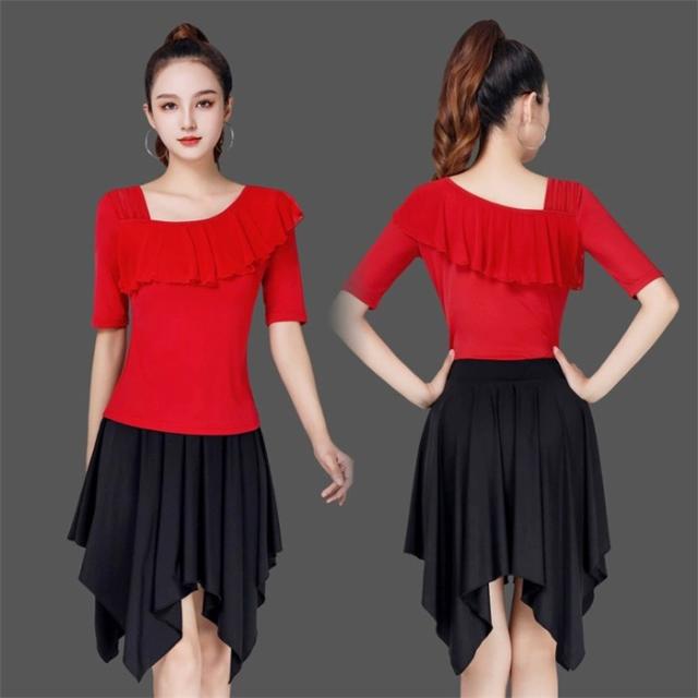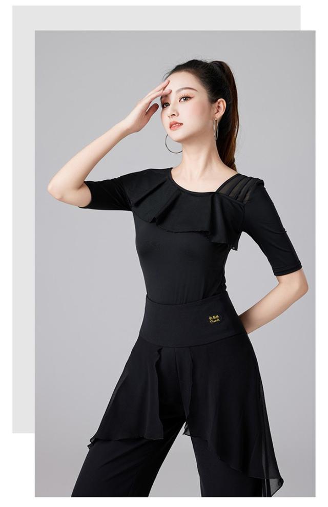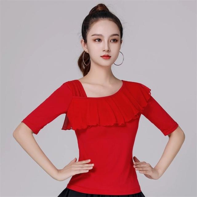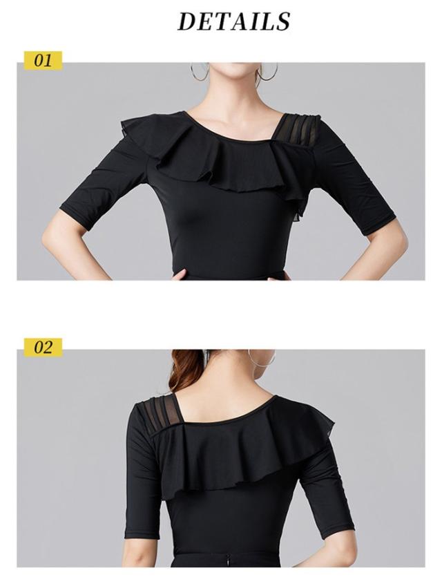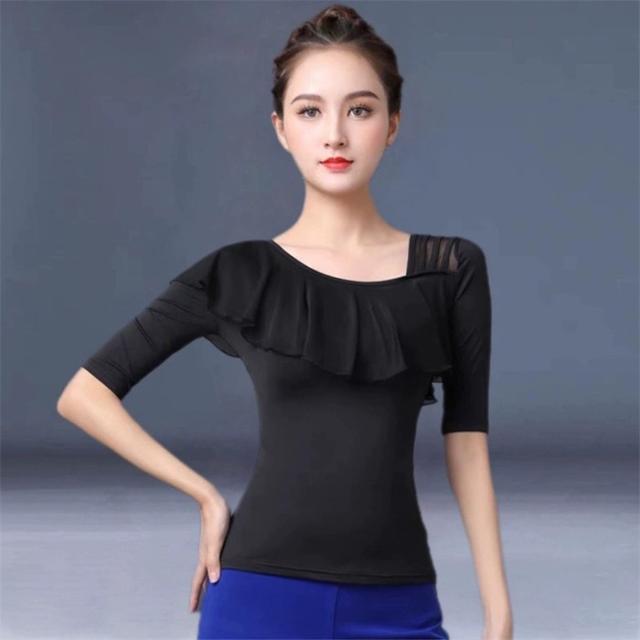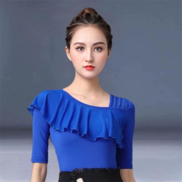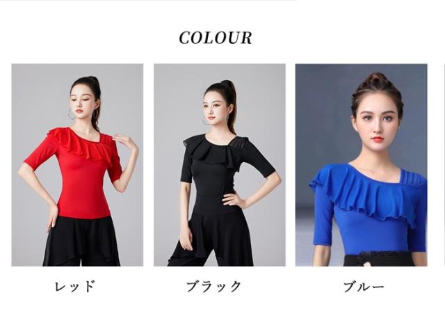 社交ダンス トップス 社交ダンス衣装 トップス 大きいサイズ ダンス用シャツ 透け感 五分袖 ダンスTシャツ 社交ダンス ラテンダンス ダンスウェア 練習着 カラオケ衣装 レッスンウェア 黒 ブルー レッド be159zbzbm5
