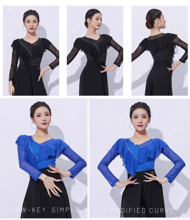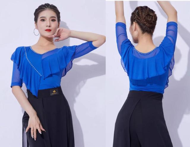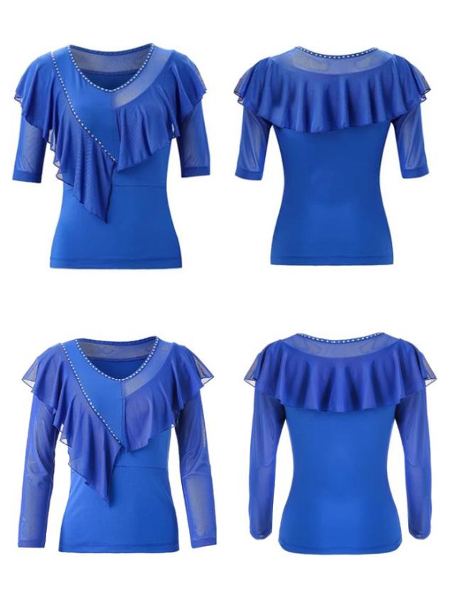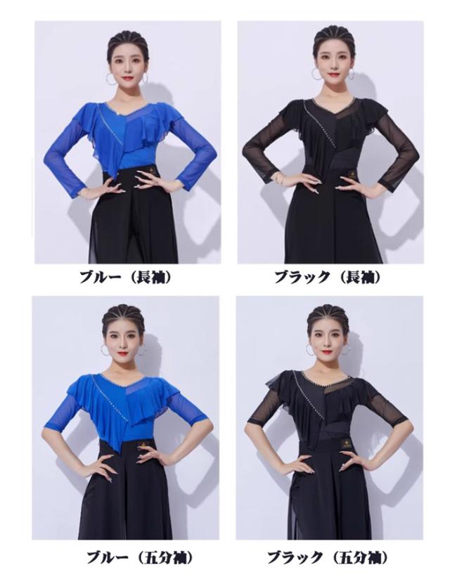 社交ダンス トップス 女性 社交ダンス衣装 上着 競技着 五分袖 長袖 モダンラテンダンス用上着 ブルー(長袖) レディース 女性用 ダンス衣装 上着 ダンス 社交 練習着 ワルツ チャチャチャ ラテン ステージ 衣装 演出着 ダンストップス