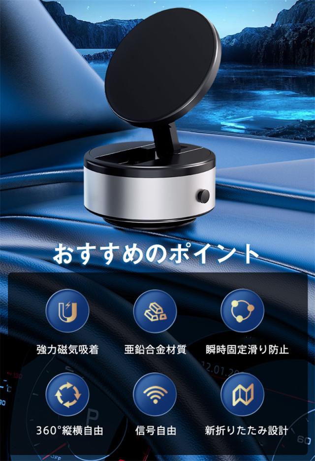 電動真空吸着式 スマホスタンド マグネット スマホホルダー 車載ホルダー magsafe式 超強力 折りたたみ マグネット フレキシブル 2秒吸付 安定感