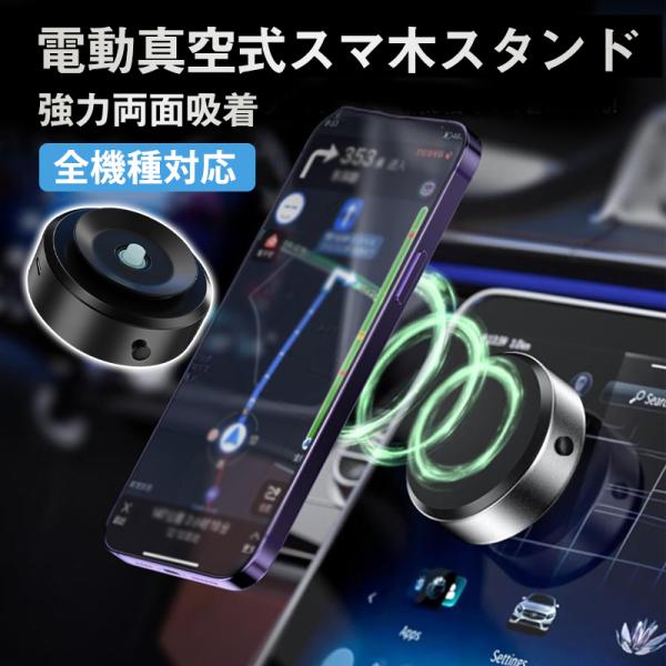 スマホホルダー 車載ホルダー 電動真空吸着機能 車 ナビゲーションサポート 2秒吸付 安定感 スマホ タブレット全機種対応 マグネット フレキシブル