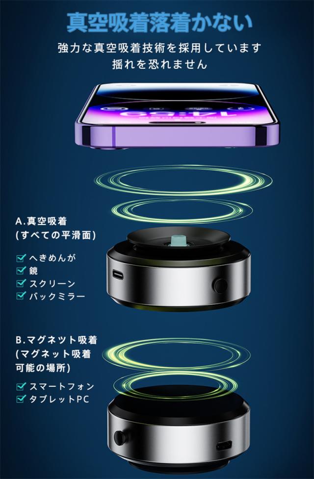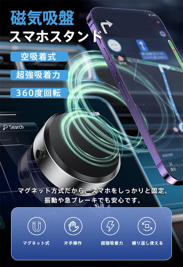 検索キーワード:スマホスタンド マグネット式 magsafe式 車載ホルダ 電動真空吸着式 超強吸着力 スマホホルダー 安定性抜群 片手操作 携帯ホルダー 取り付け簡単 卓上スタンド iPhone 15 14 13 12 ワイヤレス機種 繰り返す使用可能 タブレット対応