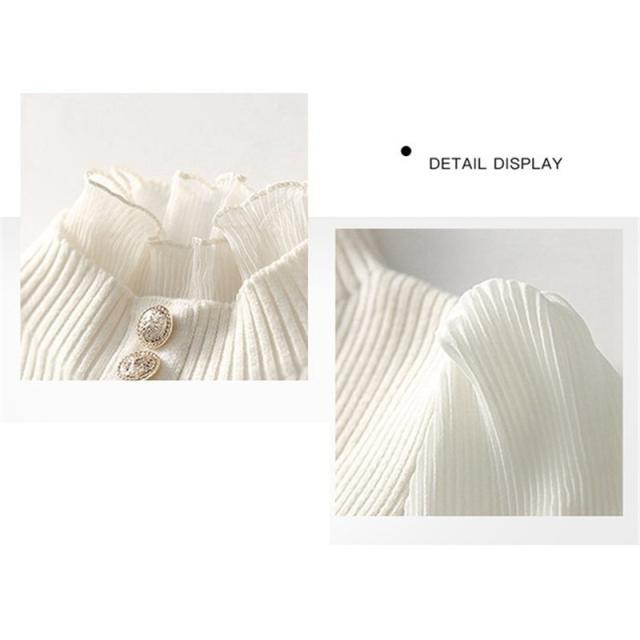 ハイネックにフリル入り、華やかなアクセント。