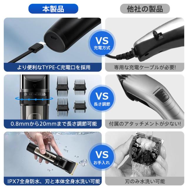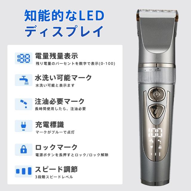 電動バリカン 新バリカン ヘアカッター 散髪 USB充電式 セルフカット コードレス LEDディスプレイ 子供 家庭用 業務用 全身防水 新生活 応援 日本語説明書