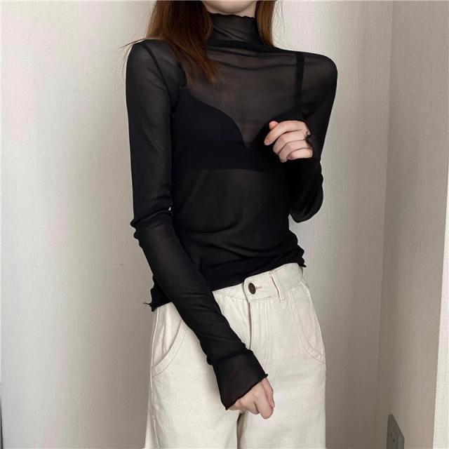 ハイネックがポイントのシースルーカットソー