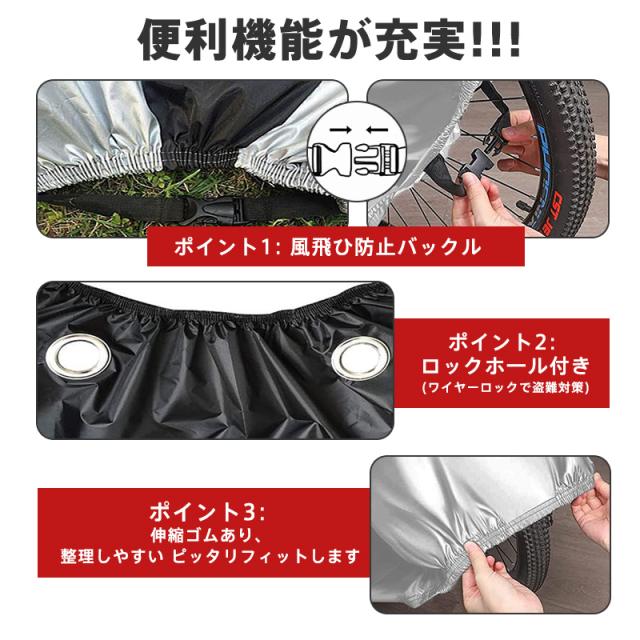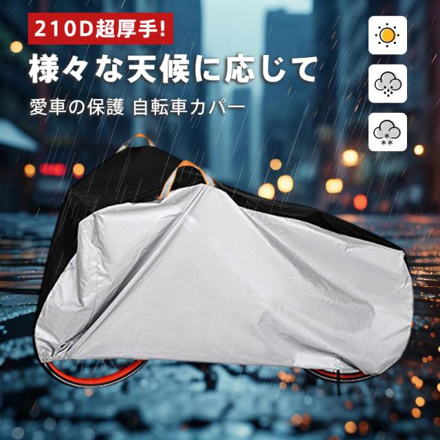 自転車カバー 防水 厚手 防犯 防風 210D 飛ばない 丈夫 破れにくい サイクルカバー 耐久 撥水 UVカット 紫外線 軽量 収納袋付き 収納簡単