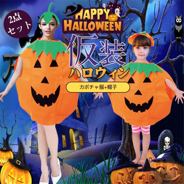 親子ペアルック ハロウィン 2点セット 子供 大人 カボチャ クリスマス 仮装 コスチューム ダンス衣装 キッズ 衣装 コスプレ 仮装 女の子 男の子