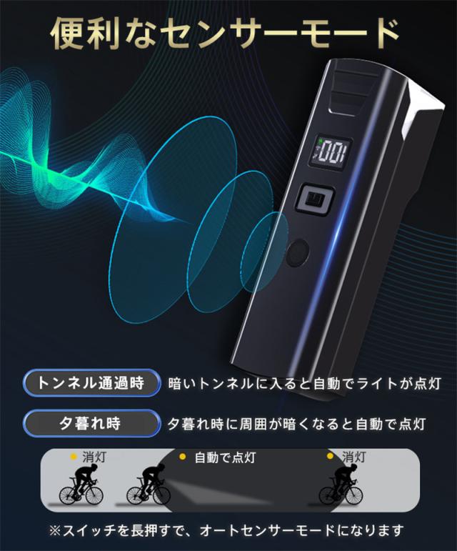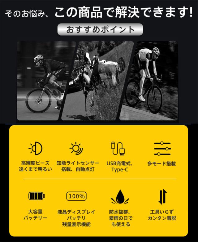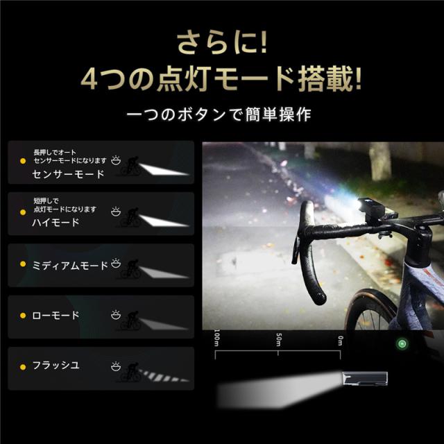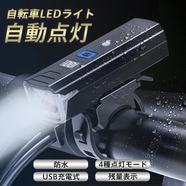 自転車ライト 自転車 ライト usb充電式 後付け 大容量 自動点灯 防水 明るい ヘッドライト 自転車ledライト オートライト 残量表示 懐中電灯