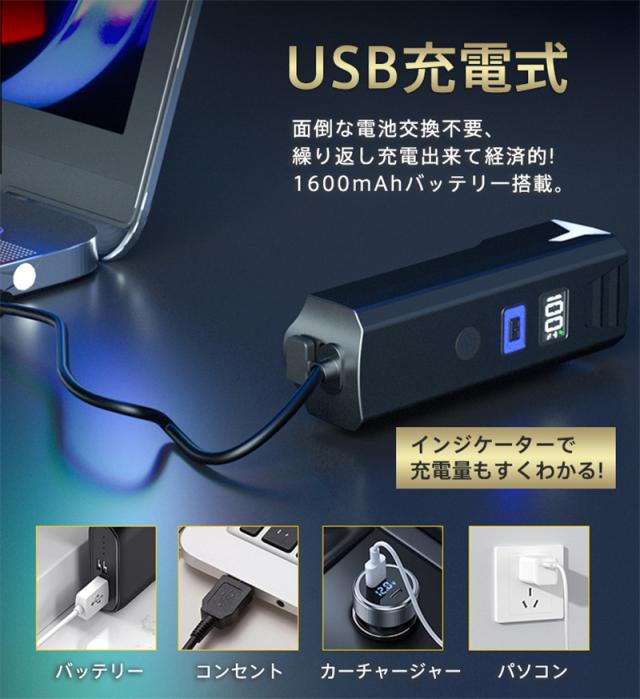 USB充電式なので、電池交換なしで繰り返し使えて経済的。