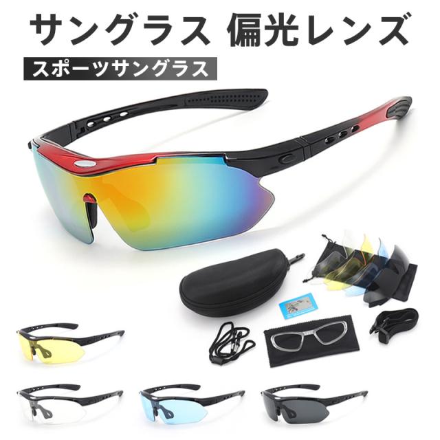 サングラス 偏光レンズ スポーツサングラス 専用交換レンズ5枚 ユニセックス UVカット ケース付き スポーツ ユニセックス 運転 アイウェア 軽量