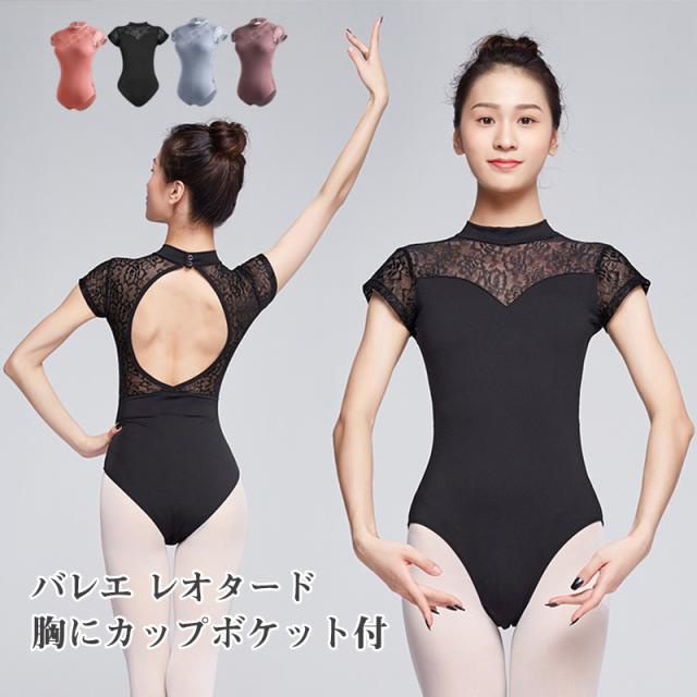 バレエ レオタード 大人用 レース ジュニア パット付き 新体操 バレエ用品 オールインワン 半袖 スカートなし 一部即納 練習用 ダンス ストレッチ レッスン
