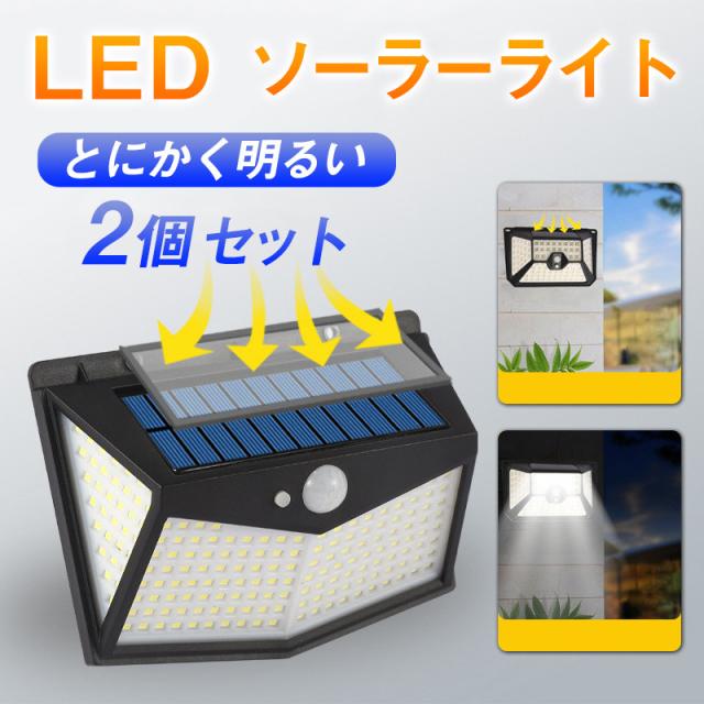 ソーラーライト 2個セット 屋外 センサーライト 人感 明るい 防水 100LED 玄関灯 ポーチライト照射 玄関 ガレージ 防犯 照明 送料無料