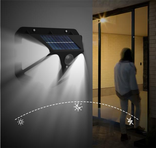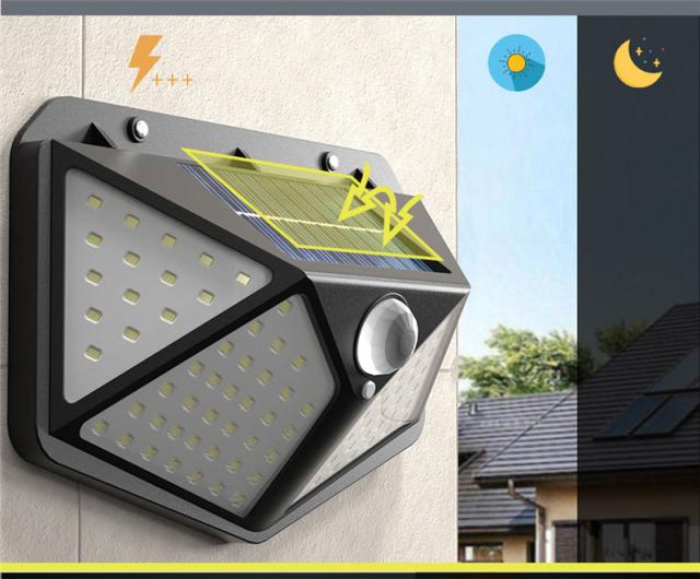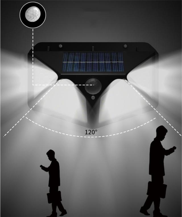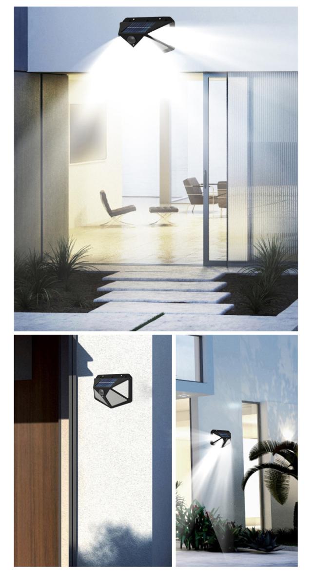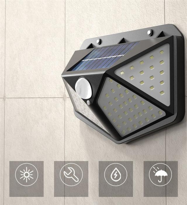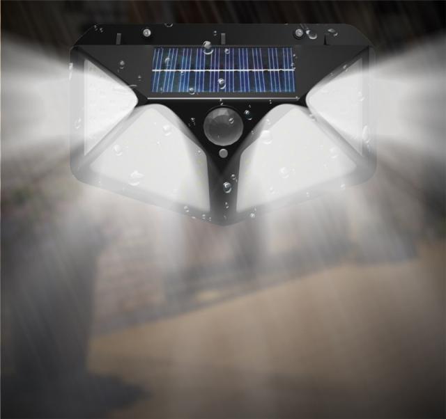 100個LEDライトが搭載し、他のソーラーライトより明るい。発光面が4個まで増やしました。