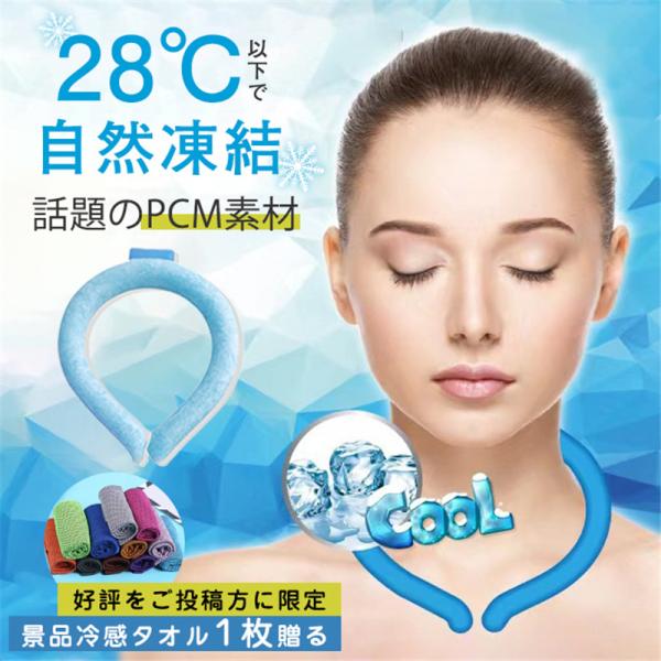 当日発送 ネッククーラー 28℃以下自然凍結 結露しない PCM素材 クールリング アイス ネックパック 冷感グッズ 首掛け ひんやり 涼しい 冷やし 夏 アウトドア