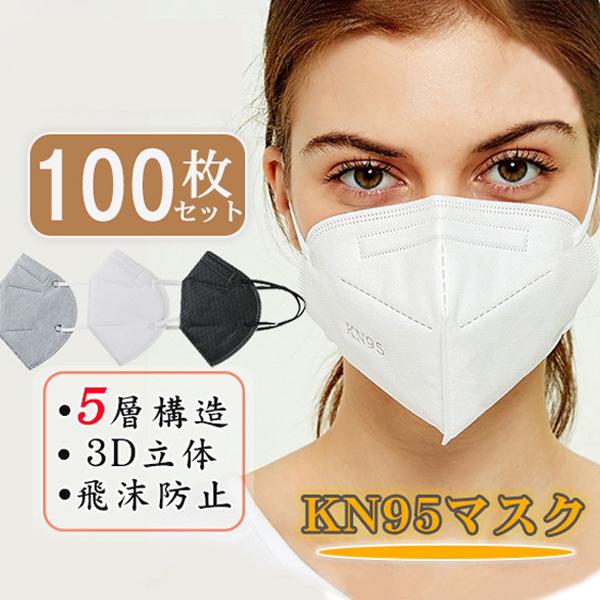 100枚セット KN95 マスク 不織布マスク 大人マスク 使い捨て 小顔 男女兼用 立体 5層構造 高品質 息ラクラク 送料無料