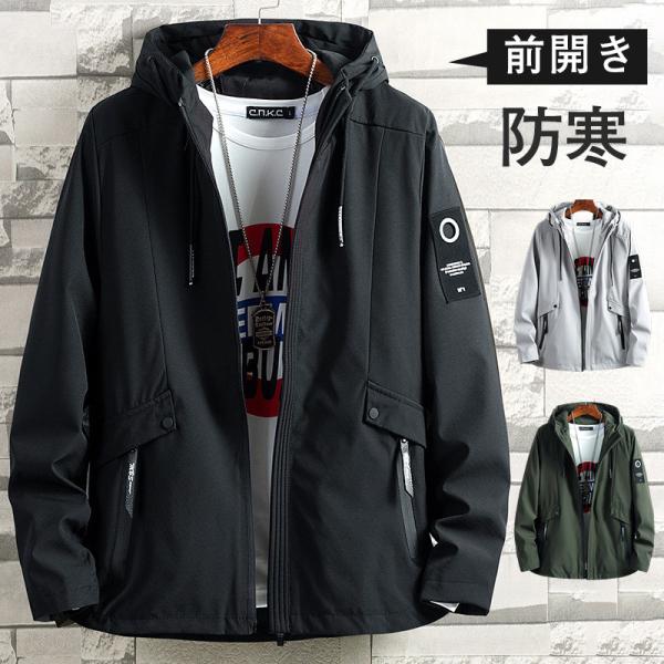 パーカー メンズ ジャージ 撥水 前開き ジャケット シンプル 一部即納 無地 ジッパー プルオーバー フード付き マウンテンパーカー 防寒秋冬 アウター