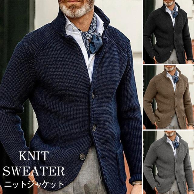 カーディガン メンズ ニットジャケット ブルゾン セーター 洗える 前開け スタンドカラー 長袖 立ち襟 無地 欧米 男女兼用 高級 秋冬 トップス