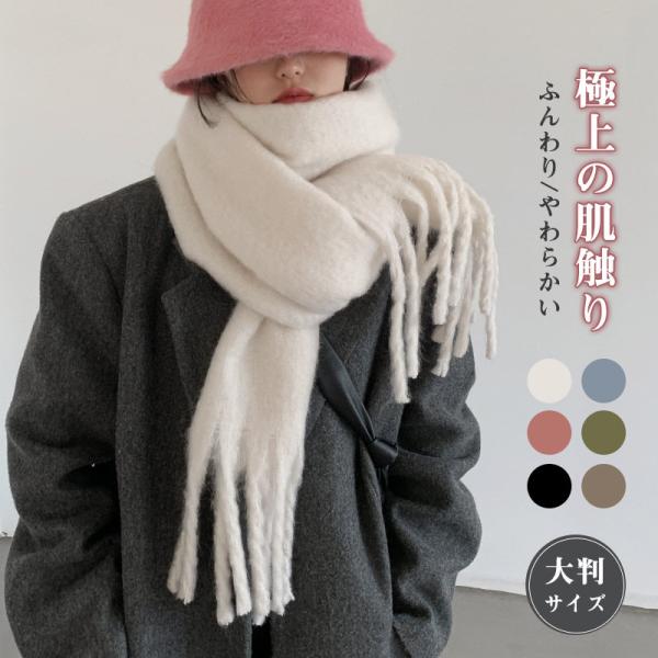マフラー ストール 大判 レディース フリンジ カシミヤタッチ リバーシブル 無地 おしゃれ 防寒 ネックウォーマー 秋冬 暖か ボリューム 暖かい フリンジ