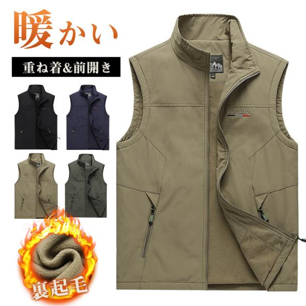 ベスト メンズ 前開きジレ 裏起毛 防寒 アウトドア お釣り 一部即納 ゴルフウェア 暖かい トップス 保温 キャンプ 撮影用 ミリタリー カジュアル 送料無料