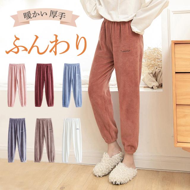 モコモコ ルームウェア ボアパンツ 部屋着 パジャマ レディース サンゴフリース素材 冬厚手 暖かい 寝巻き 寝間着 サルエルパンツ ふんわり送料無料