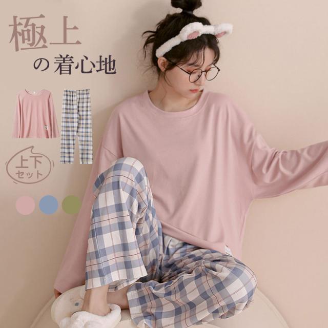パジャマ ルームウェア レディース チェック柄 上下セット 一部即納 長袖 長ズボン 春 秋 冬 部屋着 寝間着 通気性 ゆったり 外出 柔らかい 送料無料