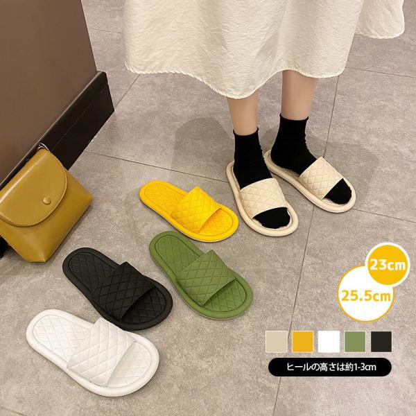 スリッパ 夏用 サンダル レディース キルティング フラット PVC 一部即納 靴 シューズ 歩きやすい ローヒール 美脚 シューズ 滑り止め 疲れない 走れる