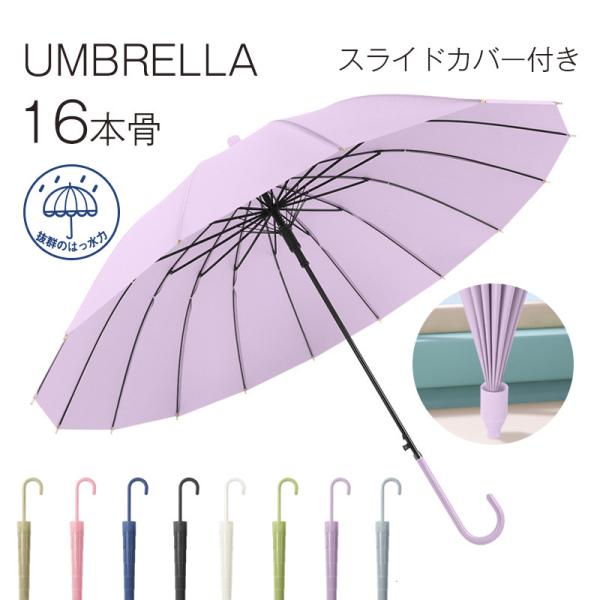 長傘 レディース メンズ 16本骨 長傘 日傘 収納カバー付き 無地 撥水カバー付き 耐風 撥水 軽量 耐風 梅雨対策 紳士傘 ビジネス 通勤 通学