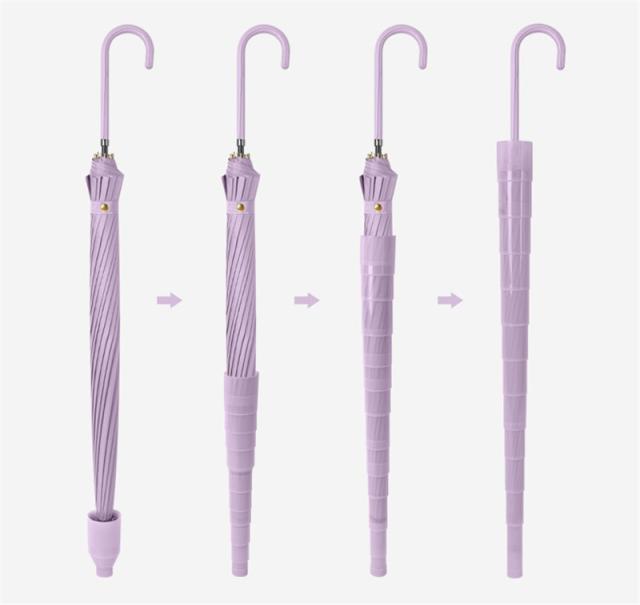 軽くて持ちやすい高強度グラスファイバー素材を採用し、丈夫さが強くて軽量で女性にも気軽に使えます。手元のハンドルは持ちやすいJ字型で、軽くて長持ちするEVCスポンジで、雨傘を差す時の肩の負担を軽減するだけではなく、持ちやすさにもこだわっている雨傘です。