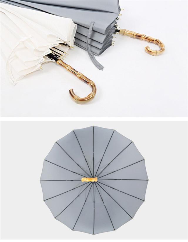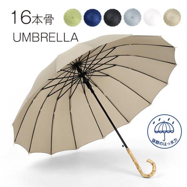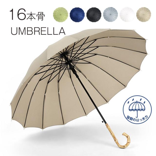 長傘 レディース メンズ 16本骨 長傘 日傘 半自動開 無地 撥水 バンブー傘 竹仕様 耐風 撥水 軽量 耐風 梅雨対策 ビジネス 通勤 通学