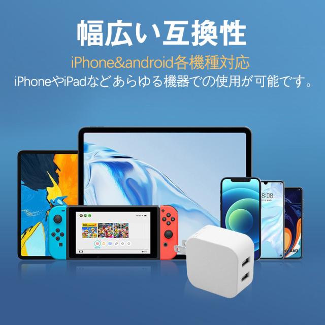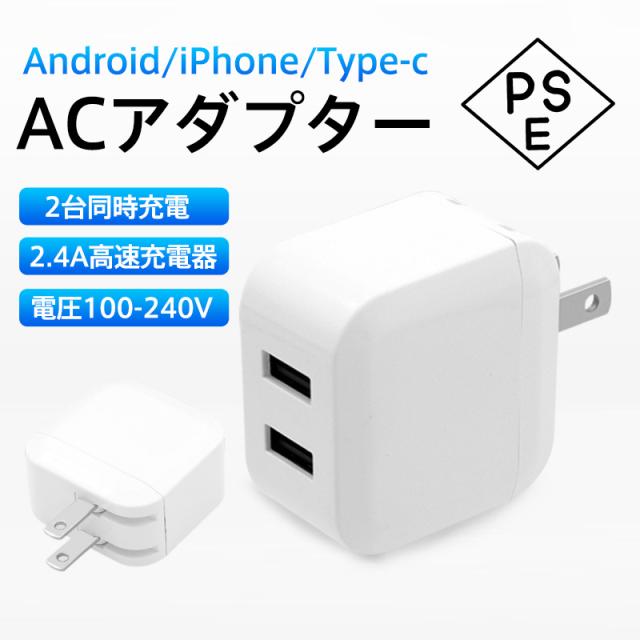 ACアダプター スマホ充電器 iPhone USB 急速充電器 2.4A 充電器 2ポート スマホ USB充電器 チャージャー コンセント 高速 急速 即納