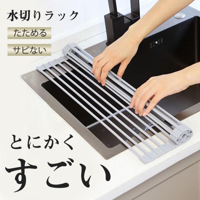 水切り ラック 折りたたみ カゴ ラック シンク上 スリム 抗菌 コンパクト 錆びない スッキリラック シンク 省スペースで大容量 全シリコン 乾燥 洗い物 抗菌 台所