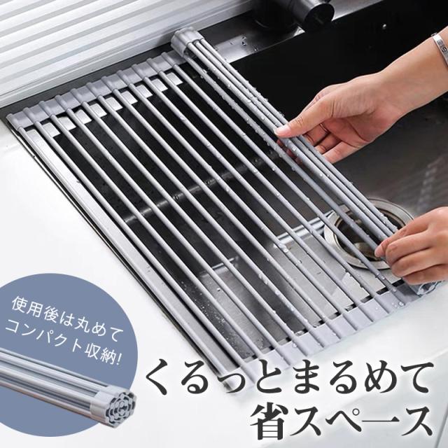 新生活 一人暮らし 水切りマット マット 伸縮 シリコン 水切り 折り畳み くるくる シンクサイド幅の広がる 食器 水切り 狭い キッチン 水切り 父の日 母の日 敬老の日