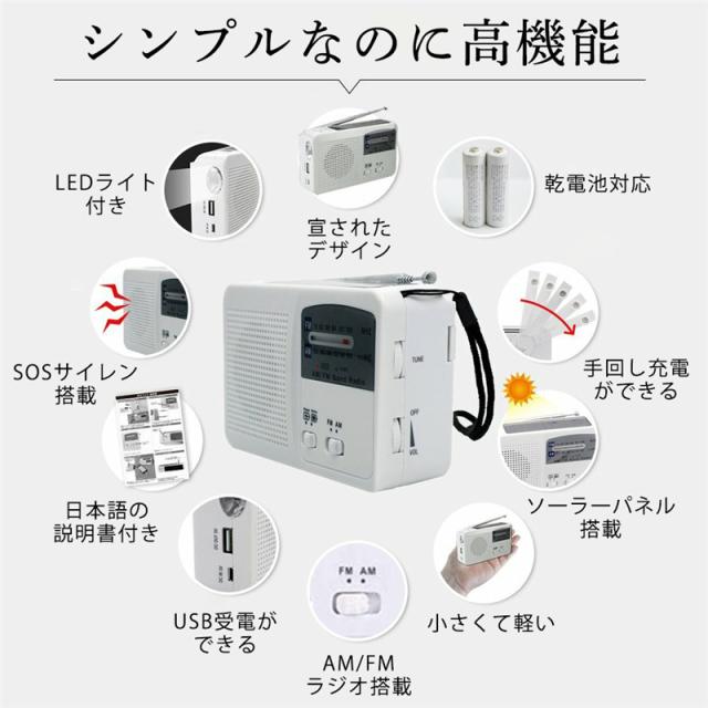 防災ラジオ 手回し 多機能 ソーラー 手回し充電 ポータブル LEDライト 小型携帯 おしゃれ FM/AM/対応 懐中電灯 防災グッズ